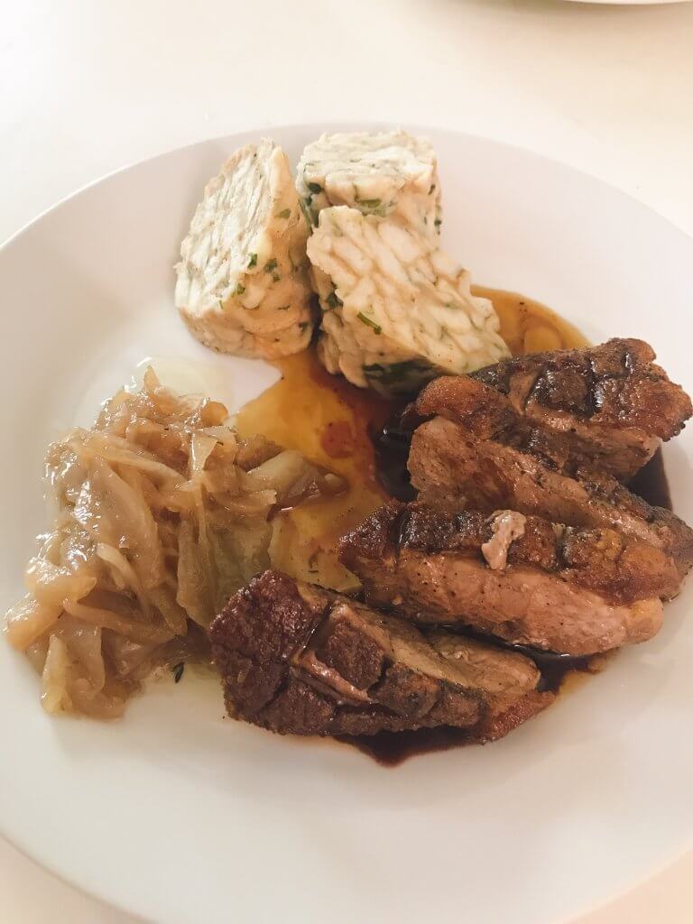 Grilovaná krkovička, sázené vejce, česnekový dip, smažená cibulka